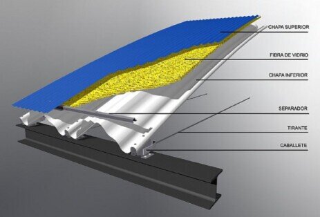 Sobre la primera teja de cubierta se colocan unos separadores en forma de omega a los que se fija la chapa exterior o de recubrimiento.